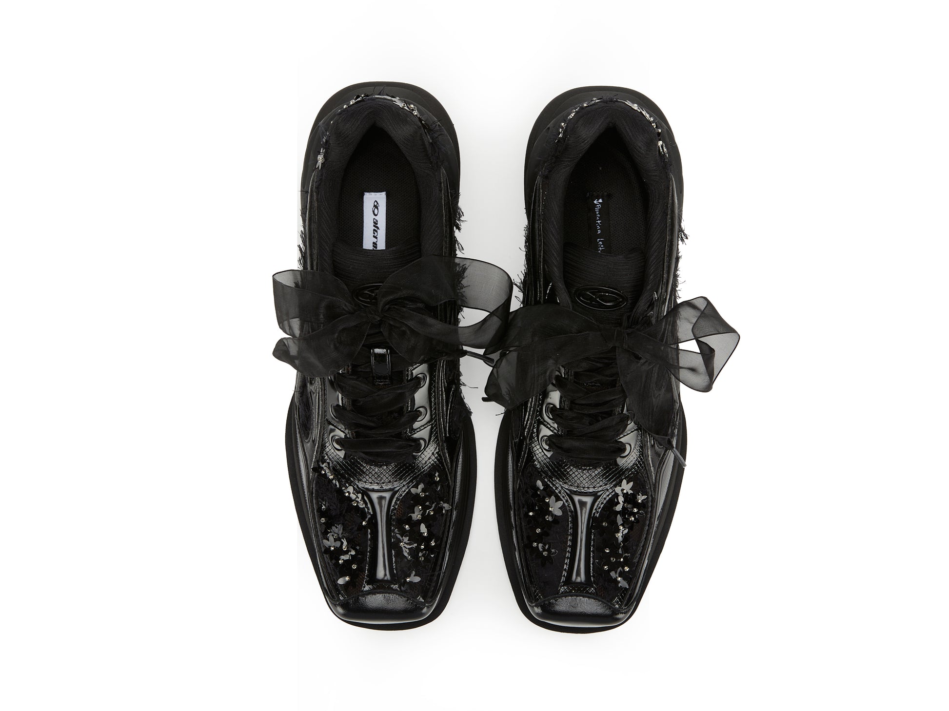 ATCROX&Florentinaleinter Co-branded cowhide square-toed beaded sports shoes